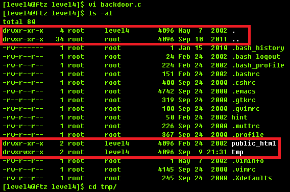 즉, level5 권한으로 /home/level4/tmp/backdoor라는 데몬 바이너리를 실행하게 됩니다.