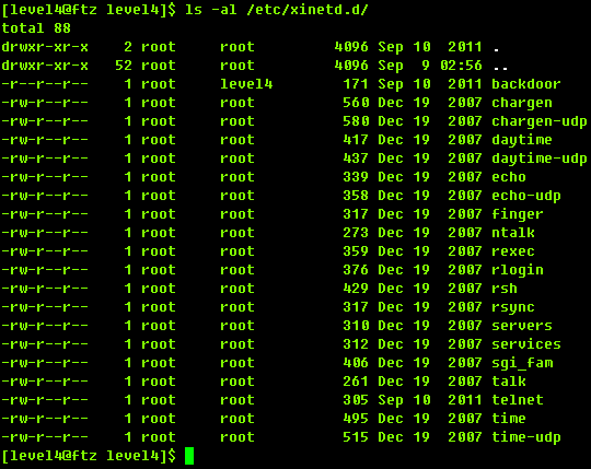 그럼 xinetd특성상 finger 네트워크 서비스를 요청받을 때 마다 /home/level4/tmp/backdoor바이너리를 실행한다고 볼 수 있습니다.