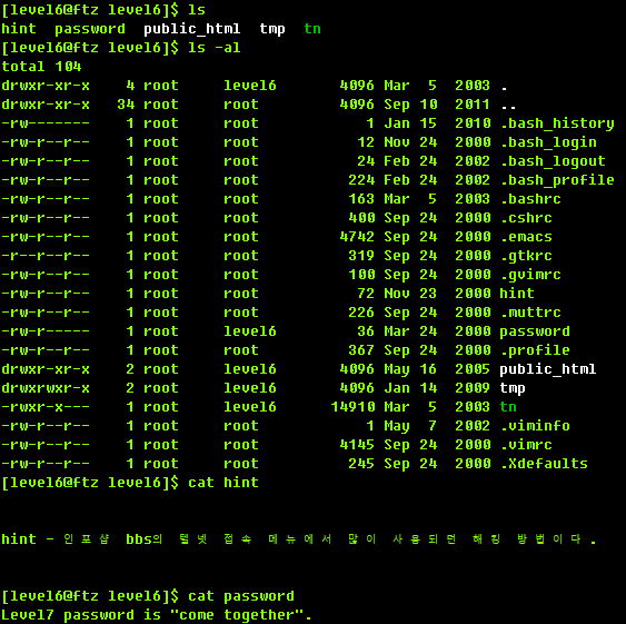 Ctrl + C를 뺀질나게? level6의 누르면 쉘이 뜹니다.