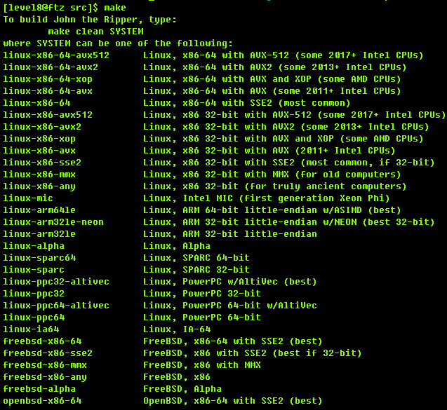 아키텍처에 맞게 make를 실행 하기 위해, 지원되는 시스템에 대해 확인 해 봅니다.