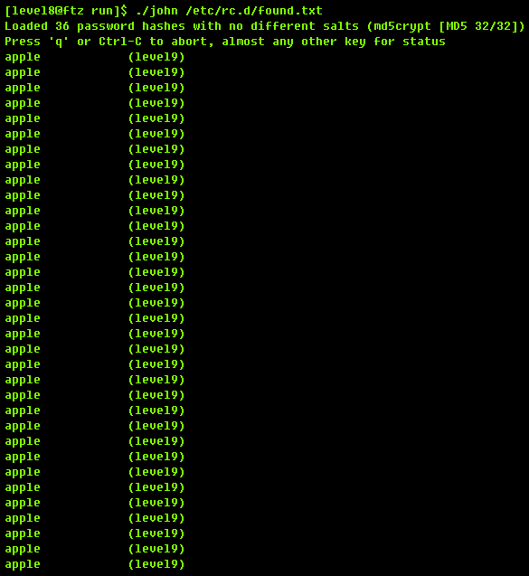 존더리퍼로 /etc/rc.d/found.txt를 복호화 하면, "apple"이 나오네요.