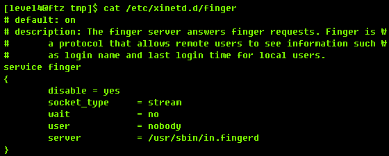 그럼 xinetd특성상 finger 네트워크 서비스를 요청받을 때 마다 /home/level4/tmp/backdoor바이너리를 실행한다고 볼 수 있습니다.