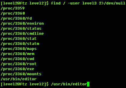 이번에도, 리눅스 명령어인 find를 사용하여, level3 유저의 권한을 가진 파일을 찾습니다.